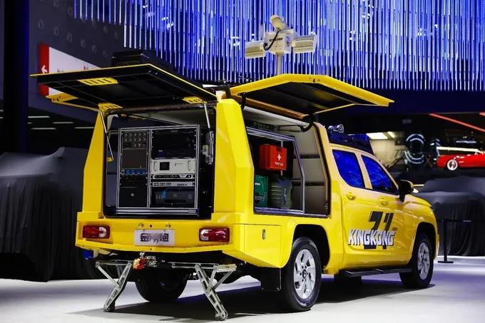 该应通信指挥车是为应对自然灾害而打造的车型,可实现多维侦测、无忧通讯、智能保障,用于水利、电网、通信等行业设备抢修及消防、灾害等应急情况现场指挥作业。该车货箱增设数种专业通讯设备,比如一些受到自然灾害影响的场所,原有的通信设备可能无法正常工作,会导致现场的手机网络出现无信号、弱覆盖、网络拥塞等状况。这时就需要应急通信车登场,为救灾现场人员提供语音及上网功能的保障,在一些边远地区,还可以借助卫星通信设备实现上述保障能力。而皮卡本身就拥有较强的通过性,对于需要这种设备的地区也能更加自如地应对。