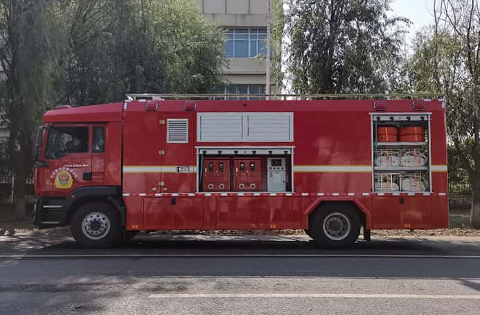该车辆是根据目前防汛排水特别研发的大流量排水车型,车辆用于快速、高效排水排涝。具有高灵敏度、高选择性等优点,设备装载于机动车上,能有效的解决城市排水过程中专业设备的运输、动力、现场照明和各类救援设备的动力源,在抢险救援中能够起到快速、安全、高效的抢险效果,降低抢修人员的劳动强度和避免人员生命财产的损失,大大提高工作效率。