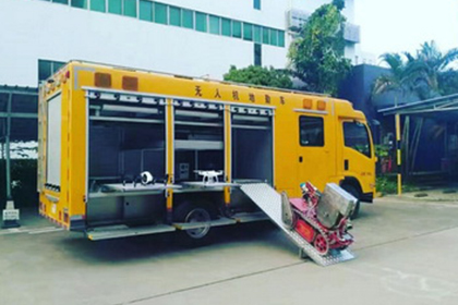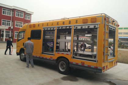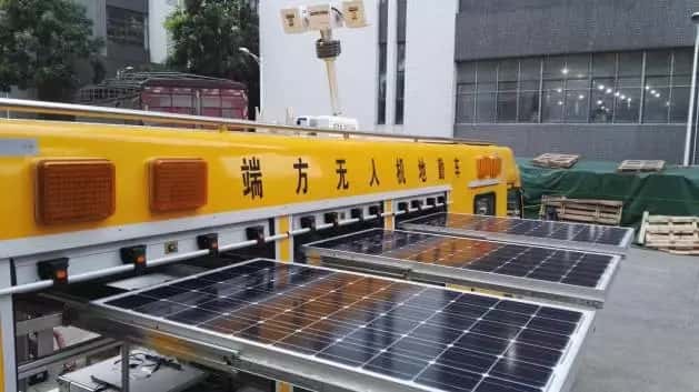 目前,随着特种车的应用范围越来越广泛,需要出勤和在外的时间越来越长,用电就成了难点,而太阳能发电就能很好的解决这个问题,保障了晚上的用电情况,无噪音且绿色环保。2016年10月31号深圳英利完成首台太阳能无人机地勤车的安装,配备3块太阳能电池板170W作为车内的发电动力,3块太阳板采用伺服电机步进马达导轨自动展出到车外,接收阳光,给汽车提供清洁动力,一天的发电量约1.3-1.5度电,晚上自动缩回汽车内。且配备1.5KW的太阳能逆控一体机及蓄电池储能1.5KWH做汽车内部供电控制储能,同时配备柴油发电机作为备用动力。这样,白天太阳能发电,就能把储能的能量用于车顶上的探照灯、车内无人机、机器人、电池充电等用电,极大的满足了特种车在户外的各种用电需求。