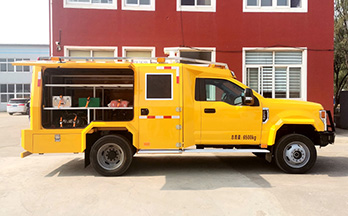 管道运维应急抢修车 、石油石化抢险专用车是在福特F550底盘基础上改装而成,车辆动力强劲、通过性强,适用于矿区路况。具有高灵敏度、高选择性等优点,设备装载于机动车上,能有效的解决应急指挥、应急救援、事故救援等,提供专业设备的运输、动力、现场照明和各类救援指挥设备的动力源,在应急指挥中能够起到快速、安全、高效的抢险效果,降低抢修人员的劳动强度和避免人员生命财产的损失,大大提高工作效率。