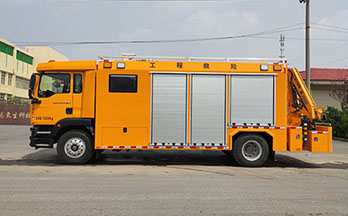 车辆厢体内部构造可根据客户行业需求定制,配备3.2吨随车曲臂吊,各类抢险救援装备,车载照明,发电机组,液压动力站,消防破拆等专用设备,极大的提高了抢险抢修的灵活性、迅速性。